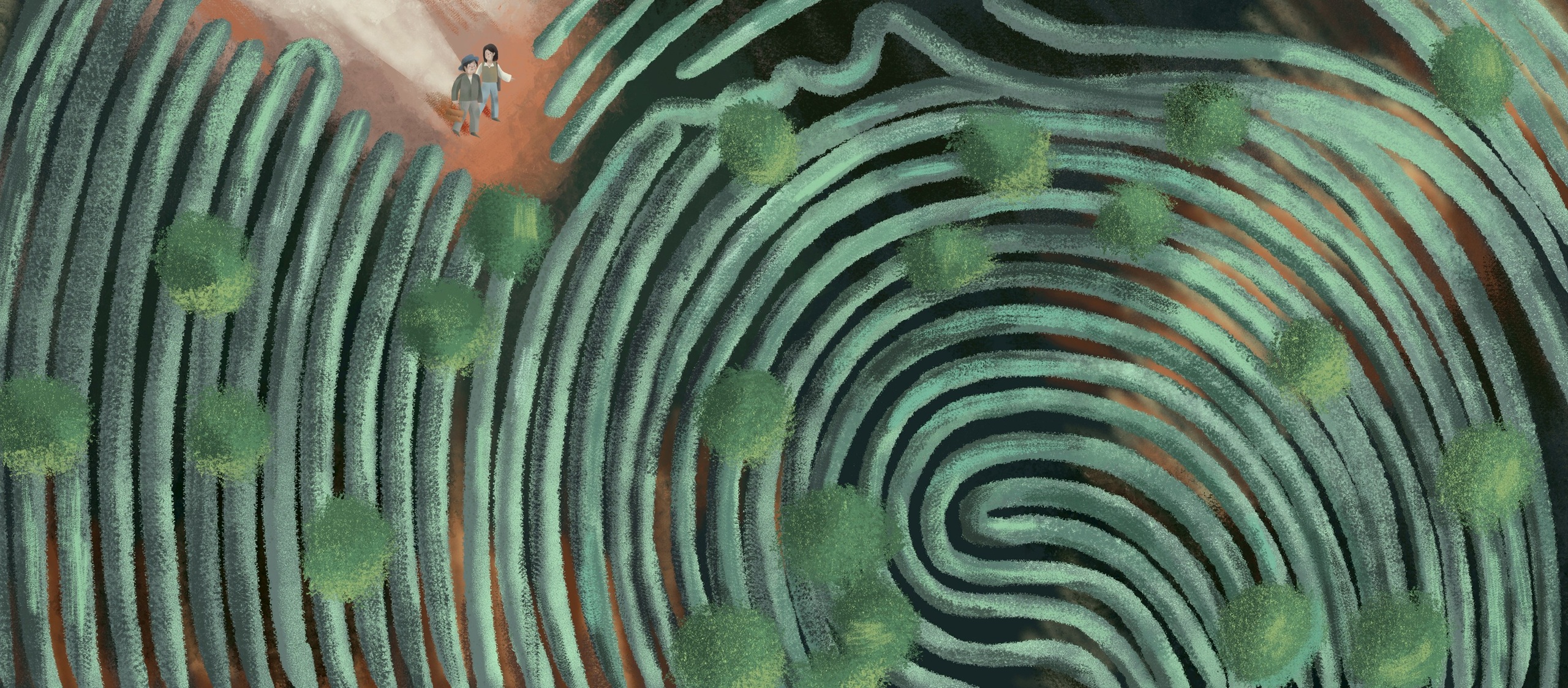 森林裡的風景,薄霧朦朧,像是在迷宮中前行。